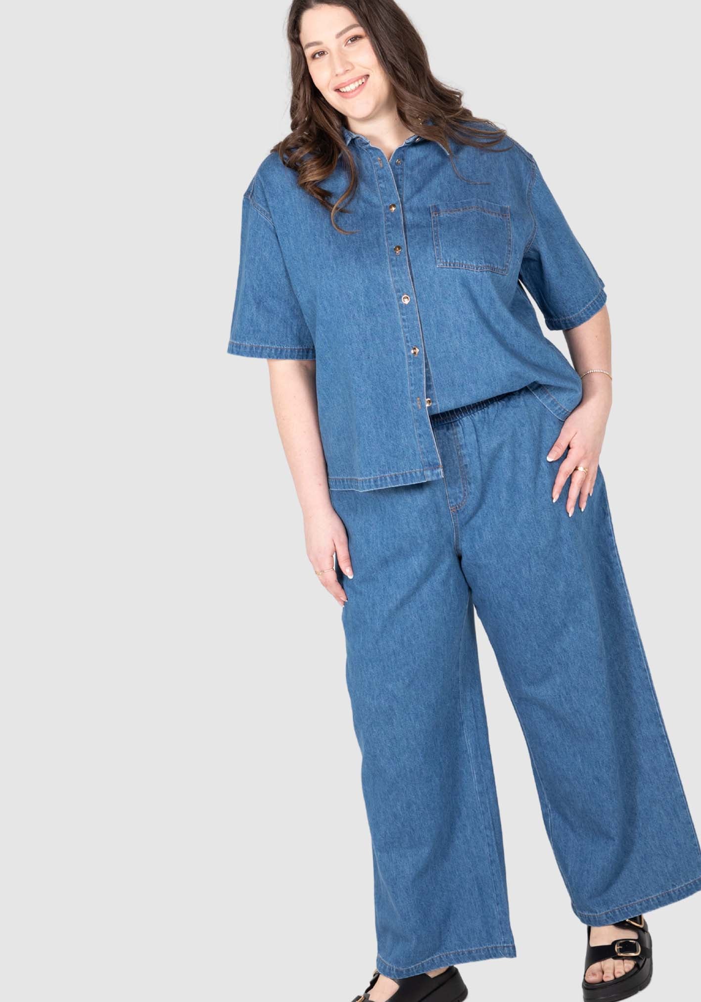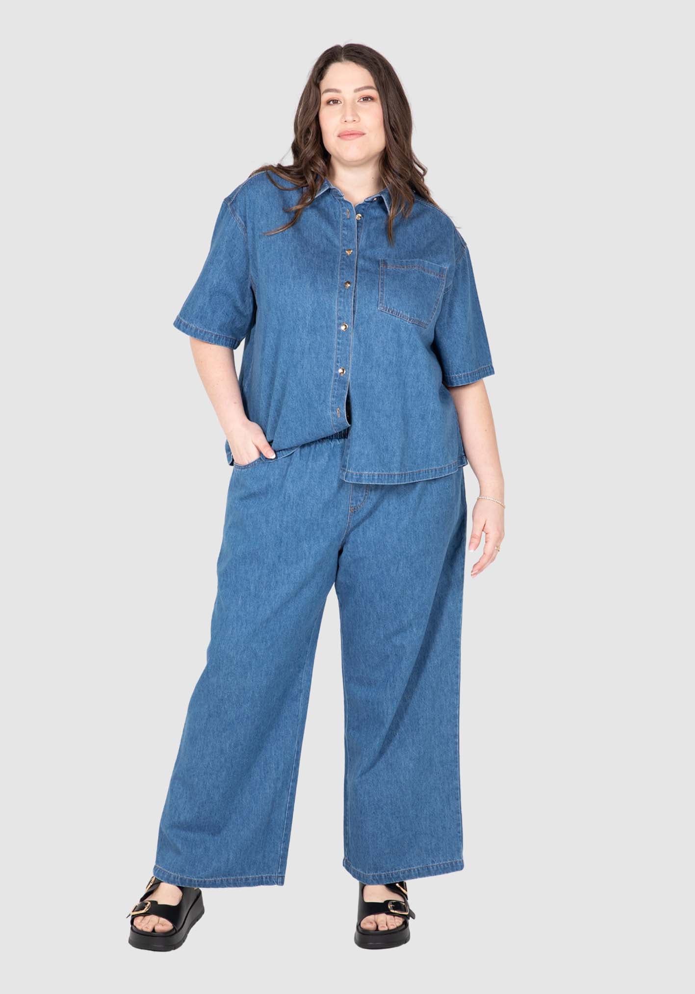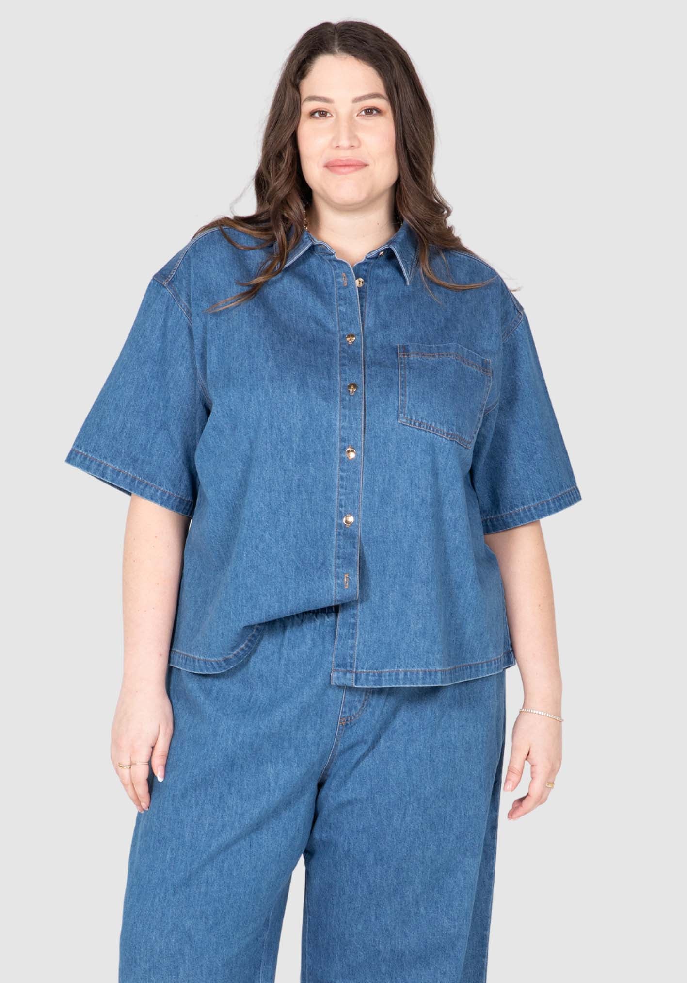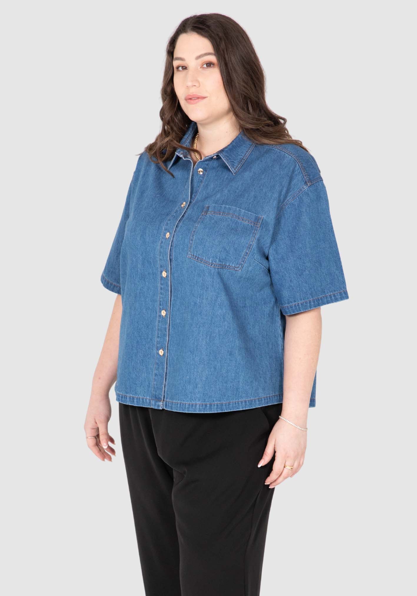Fresh in denim for the season is our Harper Denim Shirt. This new modern denim must-have style, with its short sleeve shirt silhouette, offers a contemporary box fit complete with collar and gold button through front fastening. A back yoke and tuck for extra movement and a soft liquid wash for comfort.